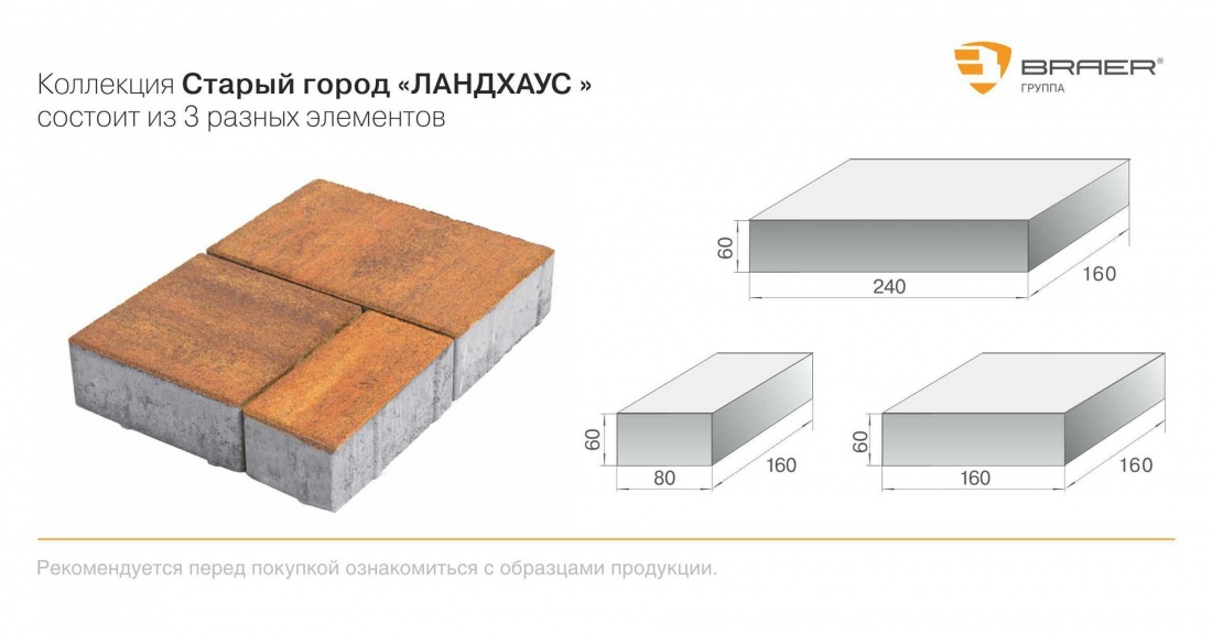 Старый город "Ландхаус" - это коллекция тротуарной плитки BRAER состоящая из трёх разных элементов, которые дают возможность применить несколько вариантов рисунка мощения не потеряв при этом в простоте и скорости укладки.