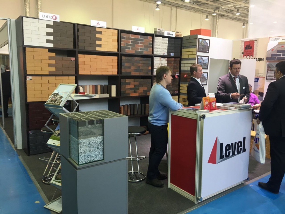 Компания Level представила на своем стенде основной ассортимент продукции торговых марок ROBEN, LODE, Пятый Элемент, Железногорский кирпич, Quick-Mix.
